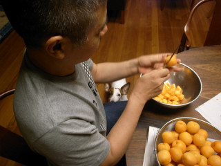 またまた夜になって、おとうさんが、ジャムおじさんに変身しました。