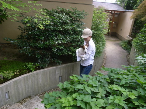 人間のおかあさんの足もとの石段の低さと、犬のなさけない感じが、よくわかると思います。