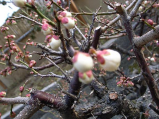 梅のつぼみどもが、もう、咲きたい咲きたいと。