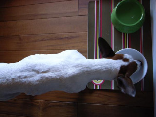 おなじみの「きんにくさん」の、食事風景です‥‥というまもなく、器のなかはからっぽになっていました。