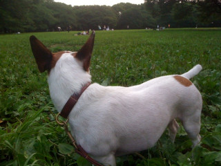 朝は朝で、人間のおかあさんと公園に行きましたけれど、夕方の散歩も、おとうさんが、公園に連れていってくれました。