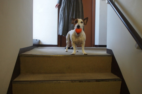 犬はもうボール投げもおわって、これから散歩でっす〜。