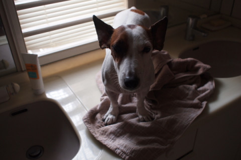 足を洗ったあとは、ふいてもらいます。
