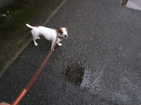 濡れている道を走ったりすると、犬は、脚がみじかいので、おなかにいっぱい泥ハネします。