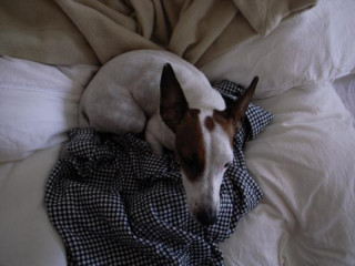 「しげちゃん」の脱ぎ捨てたパジャマの上で休みます。