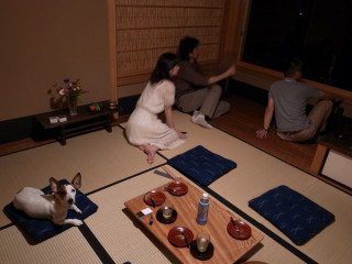 夕方、犬を置いて、みんなが夕食を食べに行きました。