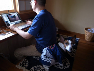 おとうさん、このハッピだか、ハンテンだか、犬に似あうのかな?