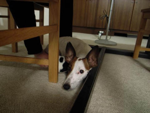 ぼくも、家人も、在宅仕事中ですが、そういうときには「無職」のブイヨンは足下にくっついてきます。