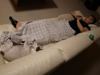 犬も、急に横になります。