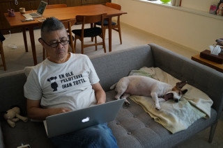 おとうさんは、ときどき犬をなでます。