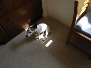 こぼれたお菓子のかけら、散歩のときの他の犬の匂い、そして、光のたまっているところ。