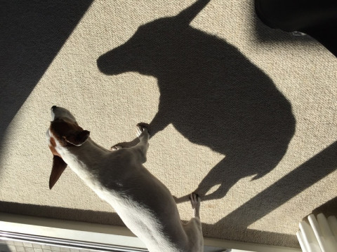 おとうさんは、影絵が好きみたいで、犬よりも影のほうを見てました。