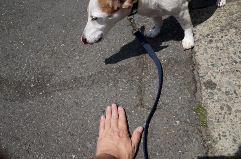 どれくらい熱いのかを、おとうさんの手でたしかめて、大丈夫そうなら散歩に出かけます。