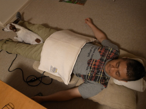 犬は、あったまったおとうさんであったまるのが、好きです。