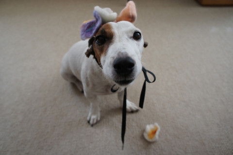 ブイヨンは、よく、おかあさんにむりやり、おしゃれさせられました。