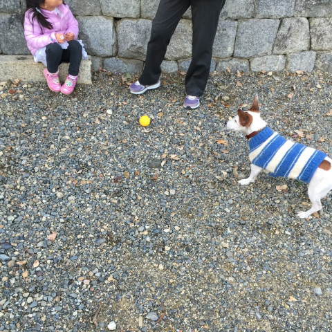 はじめて会った子どもにも、ボール投げをお願いしたりしてた。