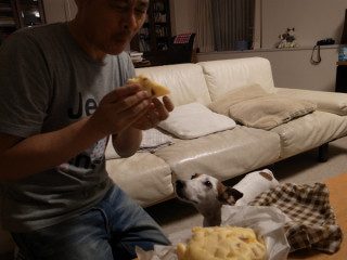 できたての熱い蒸しパンを、さっそくつまみ食いしました。