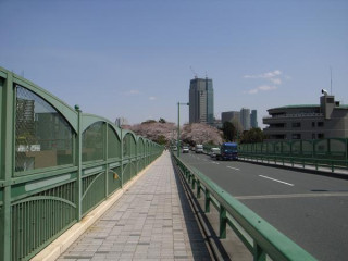 青山墓地に向かう歩道橋から、視線の先には、桜があるでしょ。