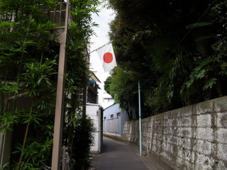 路地を歩いていたら、ずいぶん赤い太陽が見えた。