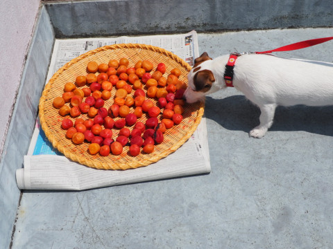 ずっと梅酢に漬かってた梅が、じりじりと太陽に照らされている。
