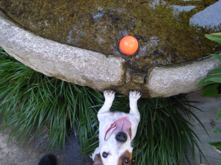 ブイコはようちえんで、おなじみのともだち犬とたのしく遊んでるらしい。