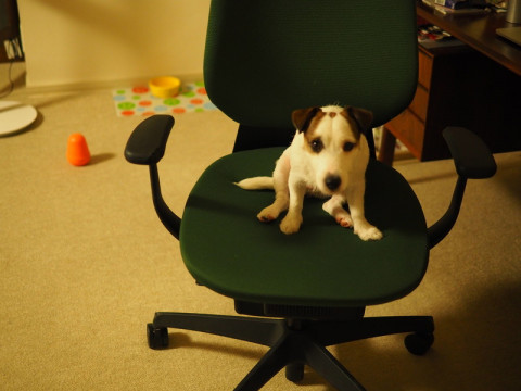 おとうさんの仕事する椅子に、よく乗りたがります。