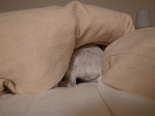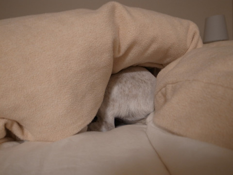 だから、人間のベッドを借りて、お先に静かに寝させてもらいます。
