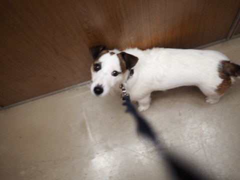 エレベーターを降りたら、すぐに戻りたがるので、抱っこして、しばらくそのまま歩く。