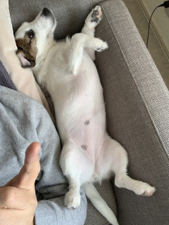 おとうさんとごろごろするときは、自由、自由、っていうか、傍若無人っていうか、のびのび犬?