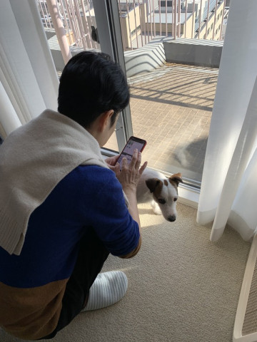 リビングのドアが開いたすきに、だだだだーーっと走って、陽だまりにきました。