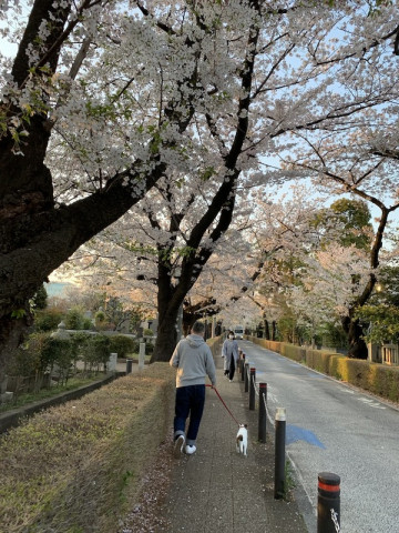 ご近所への犬の散歩は、この先も大丈夫そうなので、おそるおそる桜の咲く方面に。