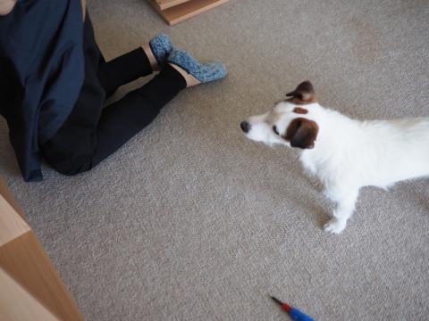 おかあさんが、棚をつくってます。