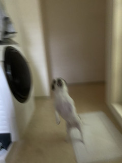 失敗写真かもしれないけど、朝の飛びつきのときの、あの「歯」がね、ちゃんと見えてる。