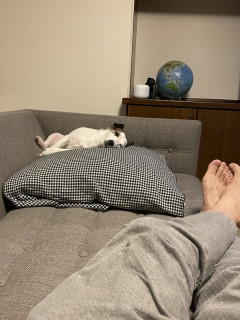 第一就寝所は、おとうさんの脚の間。