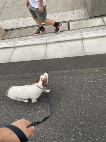 無事にすべり出したとかで、機嫌のいいおとうさんが、夕方の散歩係に手をあげました。