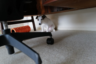 おとうさんが仕事をしている机の下は、あんがい落ち着きます。