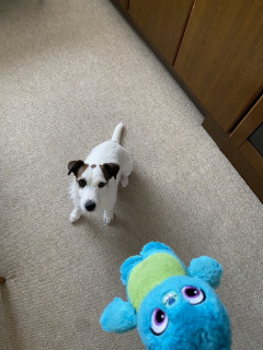 これをくわえてきて、投げてくれって。