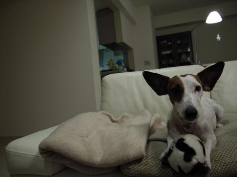 この、前肢ではさんでるボールを、鼻先で押して、落ちそうにさせるんです。
