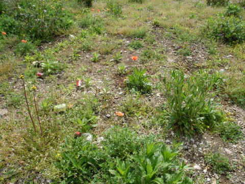 ちょっと可憐な花が咲いたり、赤いカンが捨てられていたり、これはこれで、いのちの息吹?