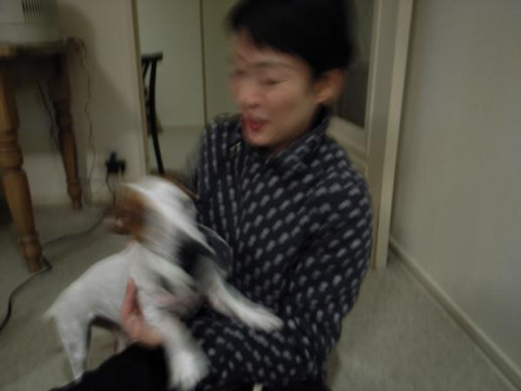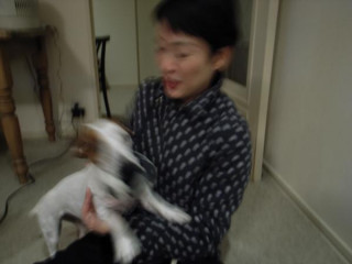 キャンペーンで留守だった人間のおかあさんが帰ってきたので、ものすごい勢いで飛びついてやった。