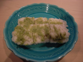 はもの白焼きに、わさびたっぷりぬって、しょうゆをちょびっとつけて、食う。