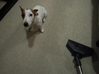 はいはい、そこの筋肉質のお嬢さん、じゃまになりますから、掃除機に興味をしめさないようにね。
