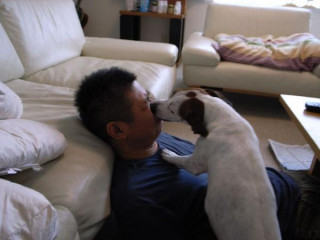食後のおとうさんの顔をなめる。