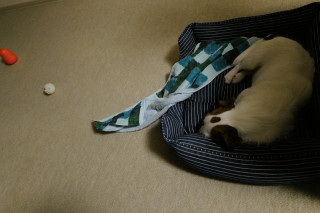 昼間にようちえんに行ってたので、すっごく深く寝ています。