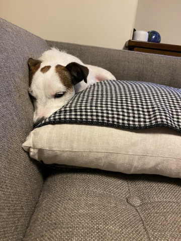 とんがった鼻先を、クッションの隙間にくさびのように打ち込み!