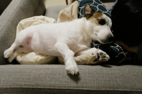 フレンチブルの仔犬に慕われて、走り回ってたらしいです。