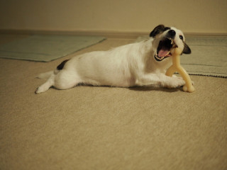そういえば、このごろ、こういう噛みごたえのあるおやつというか、おもちゃをあげてなかったね。