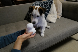 裏の駐車場で、おかあさんがささっとつくった雪だるま。