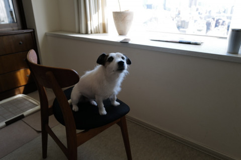 おとうさんが、たぶんわざと、椅子を離しておいたらしいけど、ぴょーんって飛べば、のぼれるかなぁのぼっていいかなぁ。