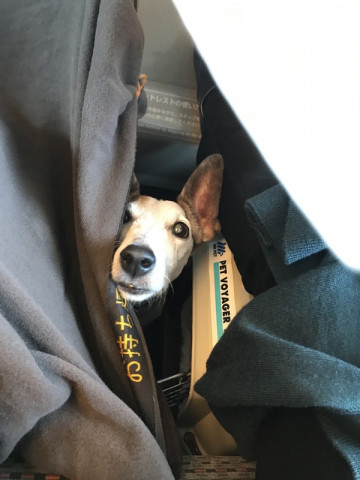 だいたいおとなしくしてたけど、たまにクンクンいうので、一瞬、顔だけ出させたこともあったな。